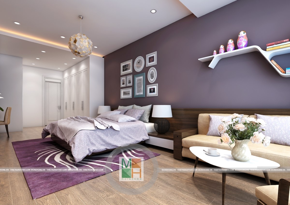 Màu tím được xem là màu có khả năng đánh thức thị giác, khơi gợi trí tưởng tượng và tạo ra nhiều ý tưởng hay đối với ngành nghệ thuật. Sắc tím nhẹ nhàng của tulip, màu tím nồng nàn của tử đinh hương, tím nhạt của hoa hồng, hoa cà đều được “tận dụng” để trang trí cho phòng ngủ thêm lãng mạn và mộng mơ. Hãy dựa vào sở thích và cá tính thẩm mỹ của mình cùng với sự chung tay của nhà thiết kế phòng khách sạn để tạo nên một gian phòng thoải mái, ấn tượng vơi những chiếc kệ tivi đẹp hiện đại, giường ngủ gam màu tím.